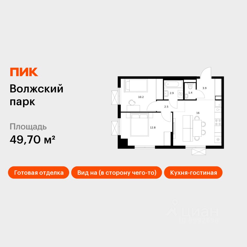 Продаётся 2-комн. квартира площадью 49,7 кв.м на 5 этаже 24 этажного дома (Корпус 6.2, Секция 3) проекта ПИК Волжский парк. Светлый просторный подъезд на уровне земли, функциональная планировка, большие окна, c отделкой.