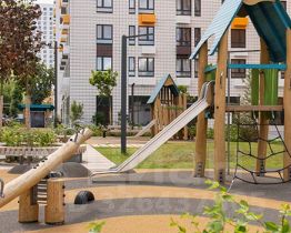В проекте предусмотрена медленная зона для электросамокатов — с 7 утра до полуночи при въезде на территорию квартала скорость электросамокатов автоматически снижается до 15 км/ч. Артикул 976402 (Застройщик АО "Специализированный застройщик "Волжский парк"")