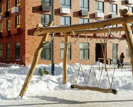 В проекте предусмотрена медленная зона для электросамокатов — с 7 утра до полуночи при въезде на территорию квартала скорость электросамокатов автоматически снижается до 15 км/ч. Артикул 976476 (Застройщик АО "Специализированный застройщик "Волжский парк"")