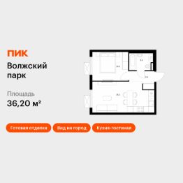 Продаётся 1-комн. квартира площадью 36,2 кв.м на 4 этаже 24 этажного дома (Корпус 6.2, Секция 2) проекта ПИК Волжский парк. Светлый просторный подъезд на уровне земли, функциональная планировка, большие окна, c отделкой.