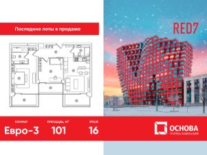 Продаются 3-к апартаменты площадью 101.0 кв.м. на 16-м этаже 19 этажного дома в RED7 от ГК ОСНОВА.