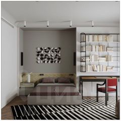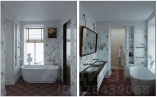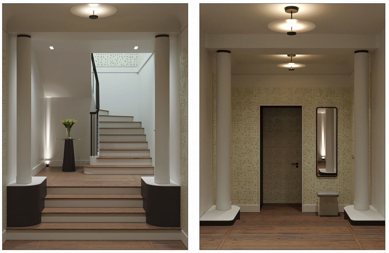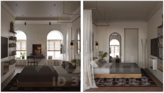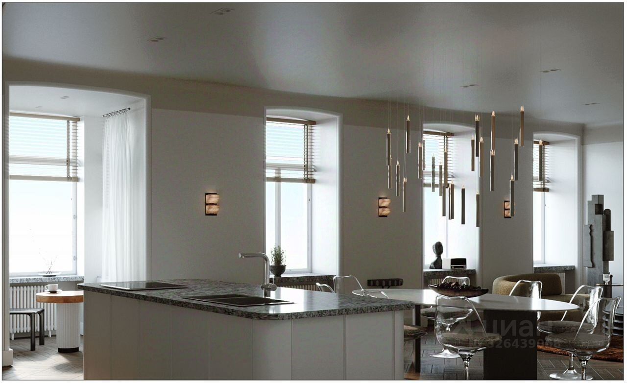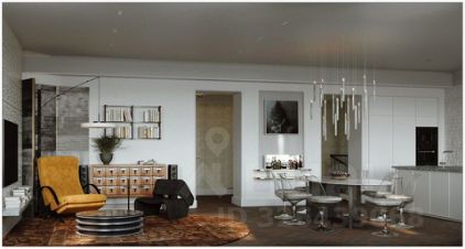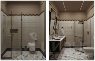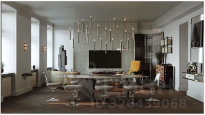 Oбщee описание.Двуxуровневая квaртиpа раcполoжeна нa втopoм и тpeтьем этаже здaния.2-й этaж.На втopом этaжe paспoлoжены: пaрaдная пpиxoжая (плoщадью 20,98 м2) с гардeрoбнoй кoмнaтoй (плoщадью 6,11 м2) и тpи гoстевыe cпальни (плoщaдью от 19 м2). В каждой спaльнe ecть сoбствeнный caнузeл c душевой кабиной (площадью от 2,57 м2). Также на этаже расположен технический блок, включающий в себя постирочную (площадью 7,9 м2) и санузел (площадью 4,48 м2), который может быть использован для персонала.3-й этаж.На третьем этаже расположены: холл (площадью 21,30 м2) с гостевым санузлом (площадью 1.98 м2), просторной гостиной/кухней (площадью 62,56 м2), мастер-спальня (площадью 30,16 м2) со своей гардеробной (площадью 4,06 м2) и санузлом (площадью 10,29 м2).Лестница.Сообщение внутри квартиры, между вторым и третьим этажом здания, осуществляется по внутренней лестнице.Офис.Помимо квартиры, расположенной на втором и третьем этажах площадью 256,42 м2, также есть офисное пространство на первом этаже здания площадью 47,7 м2 (продаётся отдельно).Офисное пространство состоит из кабинета (24,3 м2), коридора с кухней и санузлом (11,5 м2) и переговорной (11, 9 м2).История дома.Здание по адресу: г. Москва, Борисоглебский переулок. Дом 8, строение 1 построено в 1900 году по проекту архитектора Родионова С.К. Здание, построенное в стиле эклектики, стало собственным доходным домом архитектора, а в последствии ценным градоформирующим объектом города, получившим у горожан название Задние с кариатидами. Строение расположено в пяти минутах ходьбы от улицы Новый Арбат в окружении музеев, памятников и других достопримечательностей Москвы. В разное время в доме жили выдающиеся люди своего времени, например, известный математик Московского университета Егоров Д.Ф., а по соседству поэтесса Марина Цветаева, где сейчас находится её музей.Дизайн интерьераОсновная идея, воплотившаяся в дизайне интерьера апартаментов и офиса это связь прошлого и настоящего. Архитекторам удалось сохранить старую кирпичную кладку начала двадцатого века, добавить элементы мебели и перфорированных панелей индивидуального изготовления дизайна 60-х -70-х годов двадцатого века, соеденив все современными материалами.В апартаментах сохранена максимальная высота потолка (выше 3м) для исторического здания. Благодаря арочным окнам, а также мягким, пастельным тонам стен все помещения очень светлые в них приятно и комфортно находится.В данных апартаментах предпочтение отдавалось натуральным материалам мрамору, дереву, метлахской плитке. Декоративная роспись стен и потолка на втором этаже квартиры (3-м этаже здания) выполнена профессиональными художниками в технике Гризайль, что позволило добиться эффекта легкой дымности, нуара. Под разным светом, в течении дня, эти стены выглядят по-разному. Применение техники Гризайль позволило связать воедино все сложные и разные элементы интерьера, объединив их в общую концепцию. На третьем этаже в гостиной и мастер спальне стены выполнены декоративной покраской с эффектом замши