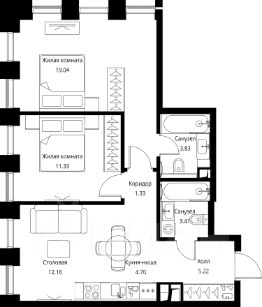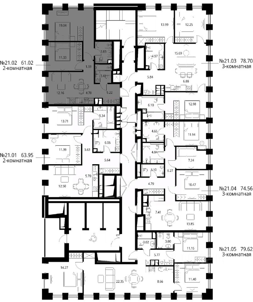 Продаётся 2-комнатная квартира общей площадью 61.02 м² с предчистовой отделкой в ЖК Сити Бэй, квартале North, на 21-м этаже 27 этажного дома.