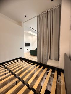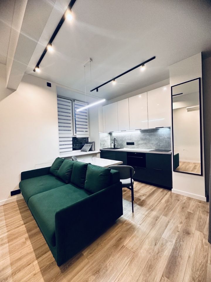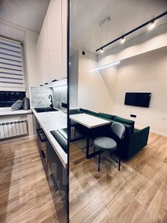 Апартаменты оформлены в современном дизайнерском стиле, что придаёт им уникальный характер и уют. Здесь одна комната и кухня площадью 6 кв. м. Санузел совмещённый, что удобно и практично. Окна выходят на улицу, обеспечивая хорошую естественную освещенность.