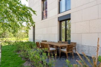 Двухсторонняя резиденция 119,6 кв.м с функциональной планировкой включает в себя: кухню-гостиную с выходом на просторную террасу 48,3 кв.м, мастер-спальню, две детские спальни. Автономная система отопления, система принудительной приточно-вытяжной вентиляции с кондиционированием воздуха и панорамное остекление.