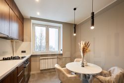 Общая площадь квартиры 92,6кв. м, жилая 64кв. м, кухня 10,5 кв. м. Квартира расположена на 4м этаже 8-ми этажного дома, сталинской постройки. В декабре 2025г. Завершен евроремонт. Паркет- дуб. Подоконники из керамогранита. Установлена система умный дом.