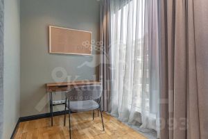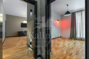 Гостиная 35 кв. м. с кухонной и обеденной зонами. Мастер-спальня 32,8 кв. м. с балконом, к которой примыкает отдельная зона кабинета. Мастер-санузел с окном, ванной и душевой кабиной. Вторая спальня/детская 12,5 кв. м. Вместительная гардеробная 7,5 кв. м. и постирочная 5,8 кв. м. Второй санузел с душевой кабиной. Большая прихожая 12,7 кв. м. Под всеми полами, где плитка, установлен подогрев. Канальное кондиционирование и приточно-вытяжная вентиляция. Установлены фильтры для воды. Техника Neff.