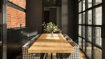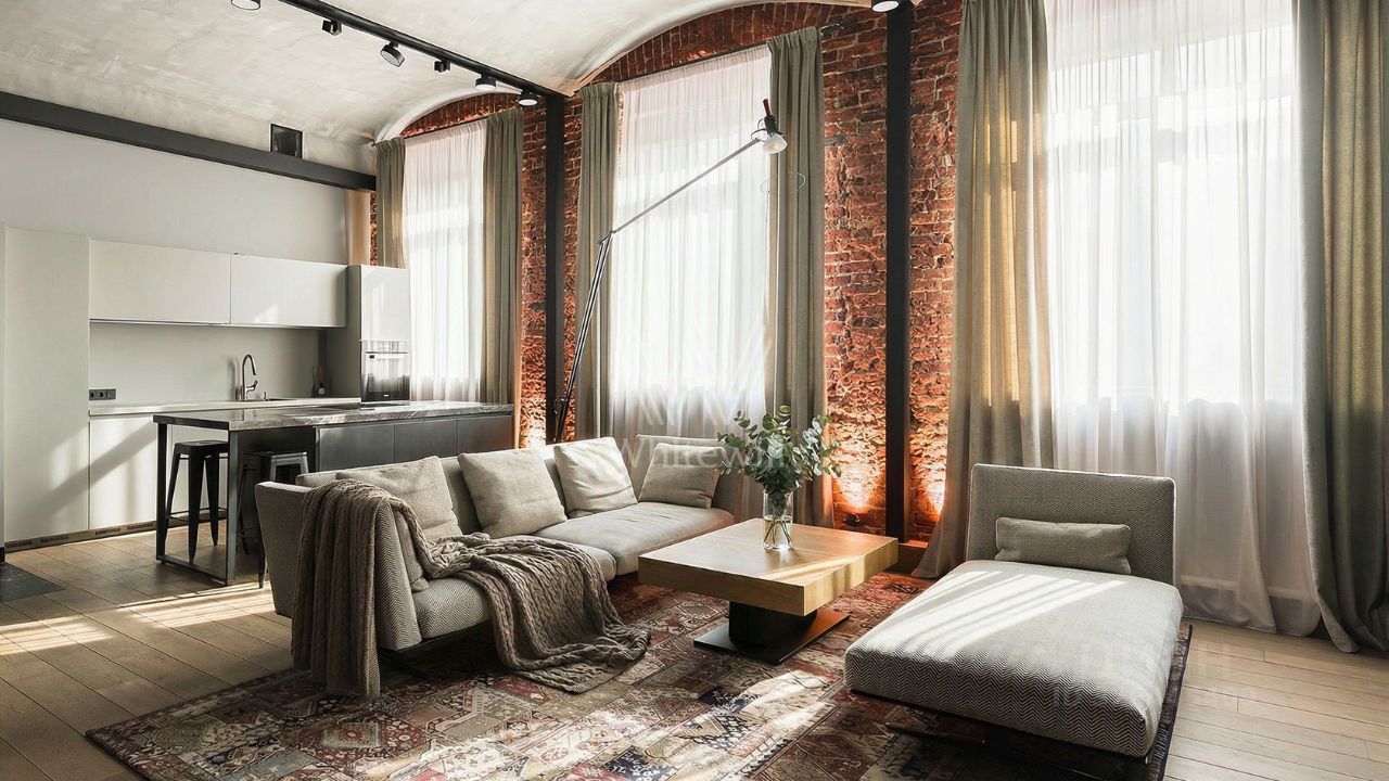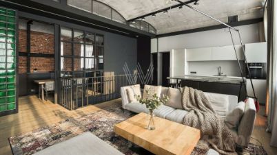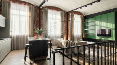 Двухуровневые апартаменты с патио в премиальном клубном комплексе "Кадашевские Палаты" в центре Москвы. Дизайн интерьера в стиле лофт со сводчатыми потолками. В отделке использовано мореное дерево, натуральный камень, мраморные столешницы, старинный кирпич с клеймами ручной формовки. Возможно использовать как офис.