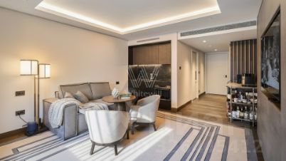 Апартаменты с 1 спальней площадью 65 м² в комплексе делюкс-класса Vesper Tverskaya на 3 этаже. Выполнен дизайнерский ремонт в стиле американского авангарда от Rockwell Group. В отделке использованы ценные породы дерева и натуральный мрамор, проведена шумоизоляция. Апартаменты полностью укомплектованы мебелью и бытовой техникой от ведущих мировых производителей.