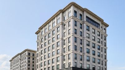 Главное о доме. Vesper Tverskaya — сервисные апартаменты на Тверской рядом с Пушкинской площадью. Архитектуру разработало бюро SPEECH: светлый камень, чёткие вертикали и крупные окна читаются как современная версия классики. В лобби — натуральный камень, латунные детали, высокий потолок, стойка ресепшн и мягкие зоны для встреч. Сервис апартаментов обеспечивает оператор MOSS Hospitality: круглосуточная консьерж-служба, техническая поддержка и помощь с бытовыми задачами. Внутри — камерные лаунжи и небольшие кабинеты для работы, во дворе — тихий сад без машин с вечерней подсветкой. Многоуровневый паркинг соединяется с корпусом на лифте.