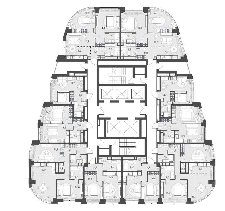 - Здоровая среда (биохакинг-центр, фитнес-зал и спортивная инфраструктура во дворе, медитационные пространства, инженерные решения для освещения, свежего воздуха и очистки воды, сервисы красоты и поддержания активного долголетия);