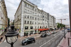 Главный кабинет с видом на театр Маяковского и Большую Никитскую. Ваше рабочее кресло стоит у окна, перед которым разворачивается историческая драма Москвы. Днём вы видите ритм главной улицы, ночью - подсвеченные фасады и афиши легендарного театра. Это не вид, это - контрольная панель города.