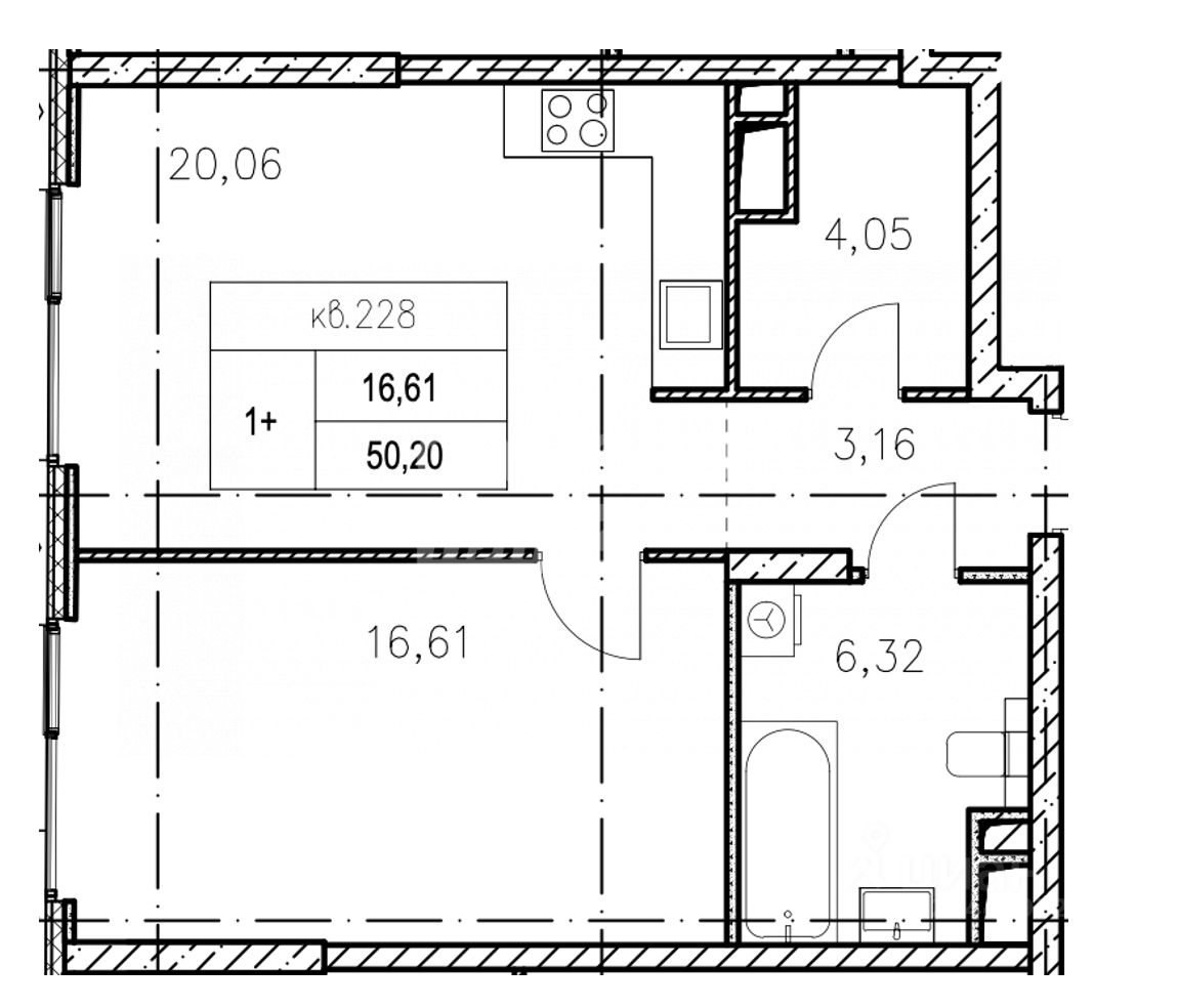 Представляем светлую квартиру площадью 50,2 кв. м на 17м этаже — с панорамным видом на город и продуманной планировкой: