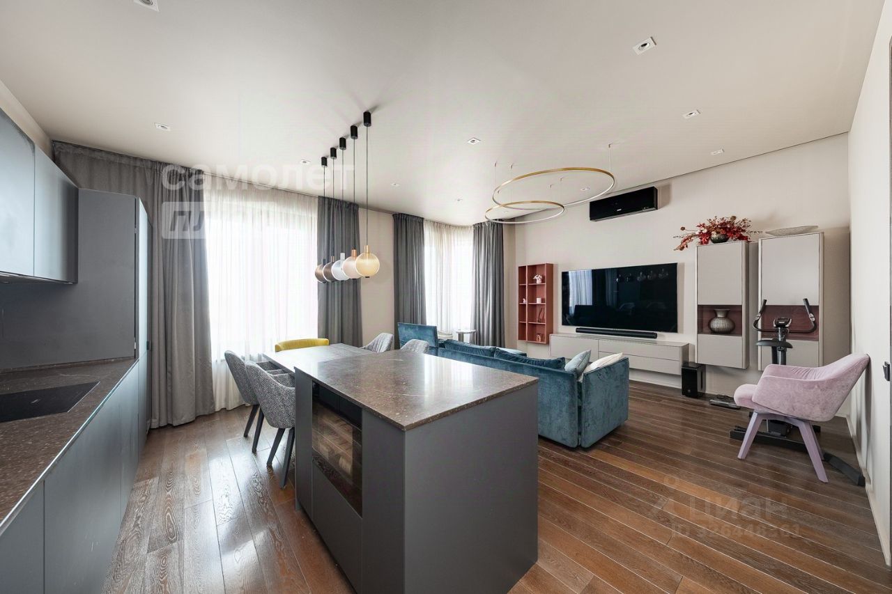 Интерьер квартиры выполнен с использованием самых современных и дорогих отделочных материалов: мрамора, гранита и натурального декоративного камней, создавая атмосферу истинной роскоши и уюта. На кухне вас встречает изысканная каменная столешница и стильный немецкий гарнитур, которые вдохновят на кулинарные шедевры. Для вашего комфорта предусмотрены современные системы кондиционирования, теплый пол и инновационная система "Умный дом", позволяющая управлять домом одним нажатием кнопки.