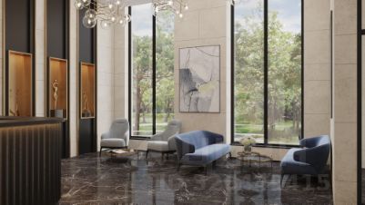 Архитектура проекта - современное прочтение торжественного и изящного стиля ар-деко, который, как и сталинский ампир, сформировался в результате развития идей чикагской школы. В доме 6 секций, 115 вариантов продуманных планировочных решений - от уютных студий до просторных пентхаусов с дровяным камином. В каждой квартире предусмотрен полный комплекс систем комфорта: принудительная центральная вентиляция с фильтрацией воздуха, очистка воды до уровня питьевой, круглогодичное горячее водоснабжение, быстрые бесшумные лифты, которые идут прямо в паркинг, продуманная подготовка под кондиционирование и другие технологические решения.