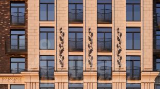 Архитектура проекта - современное прочтение торжественного и изящного стиля ар-деко, который, как и сталинский ампир, сформировался в результате развития идей чикагской школы. В доме 6 секций, 115 вариантов продуманных планировочных решений - от уютных студий до просторных пентхаусов с дровяным камином. В каждой квартире предусмотрен полный комплекс систем комфорта: принудительная центральная вентиляция с фильтрацией воздуха, очистка воды до уровня питьевой, круглогодичное горячее водоснабжение, быстрые бесшумные лифты, которые идут прямо в паркинг, продуманная подготовка под кондиционирование и другие технологические решения.
