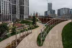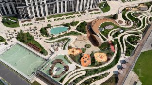 В центральной части парка расположен амфитеатр со сценой для представлений и проведения мероприятий. Для гармоничного развития маленьких жителей - пространства по стандарту Kid`s Lab для гармоничного развития детей всех возрастов: детская площадка, игровая комната, рельефная площадка для общения со сверстниками, где можно заниматься паркуром, танцевать и играть в настольный теннис.