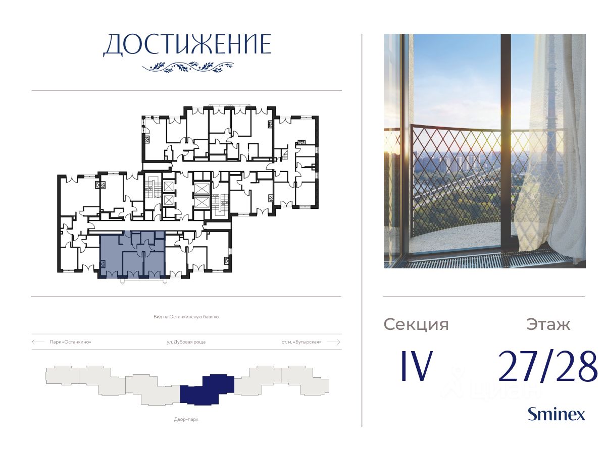 "Достижение" - единственный дом с торжественной архитектурой в окружении бескрайних парков на любой вкус: парк "Дубовая роща", обновленный классический парк "Останкино", самый известный парк России ВДНХ и крупнейший в Европе ботанический сад.