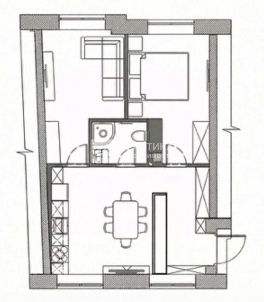 Функциональная планировка :спальня + зал + кухня-гостиная, много систем хранения.