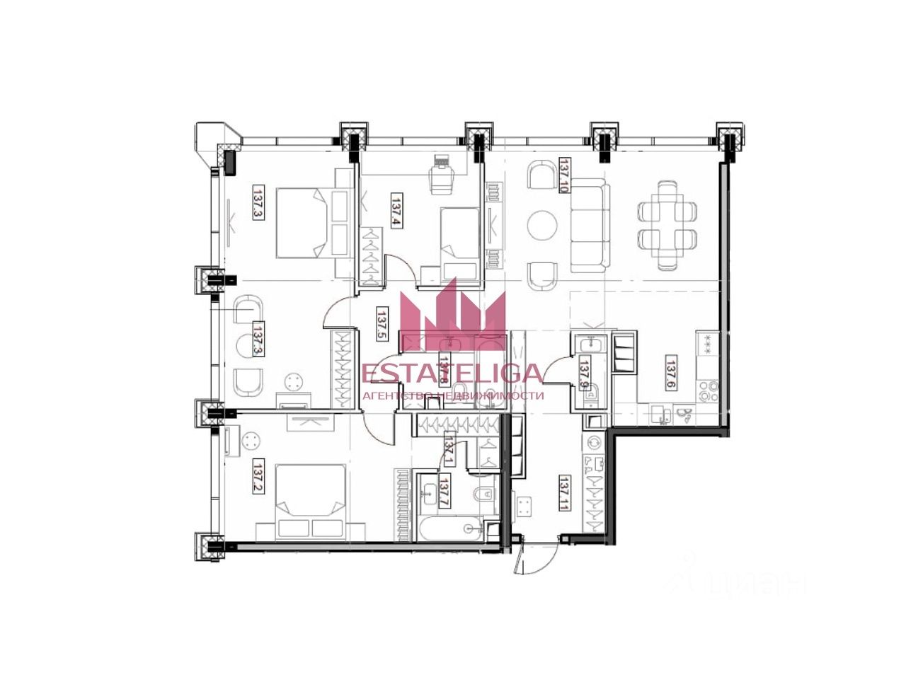Id 57192. Продается просторная 4-комнатная квартира в современном жилом комплексе MOD. Общая площадь квартиры составляет 109 м².