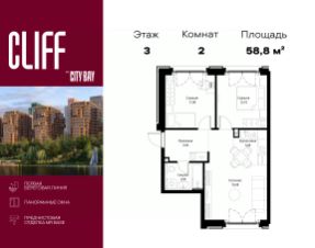 Продаётся 2-комнатная квартира общей площадью 58.80 м² с предчистовой отделкой в ЖК City Вау, квартале Cliff, на 3-м этаже 15 этажного дома.