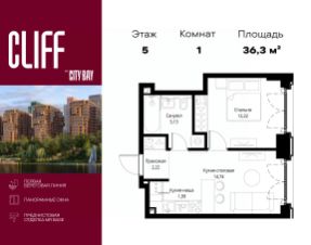 Продаётся 1-комнатная квартира общей площадью 36.30 м² с предчистовой отделкой в ЖК City Вау, квартале Cliff, на 5-м этаже 15 этажного дома.
