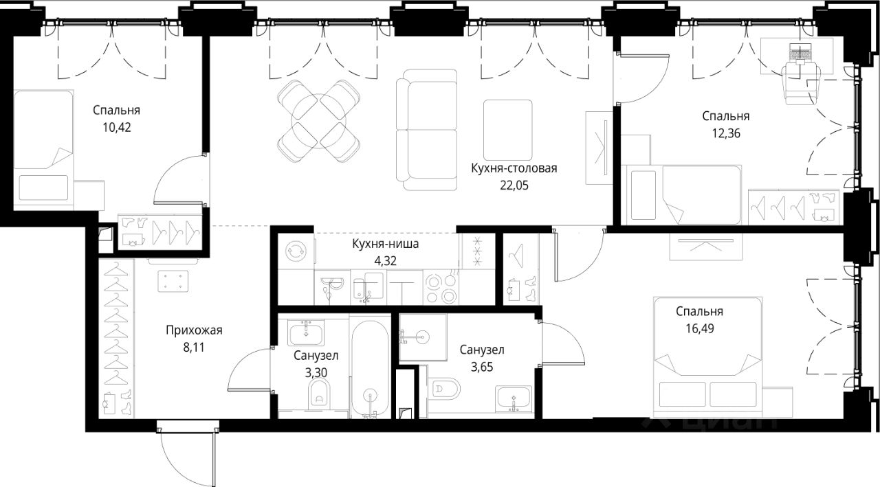 В каждом здании комбинируется максимальное количество и разнообразие форматов квартир: от видовых квартир с зелеными террасами и лоджиями до квартир малого формата.