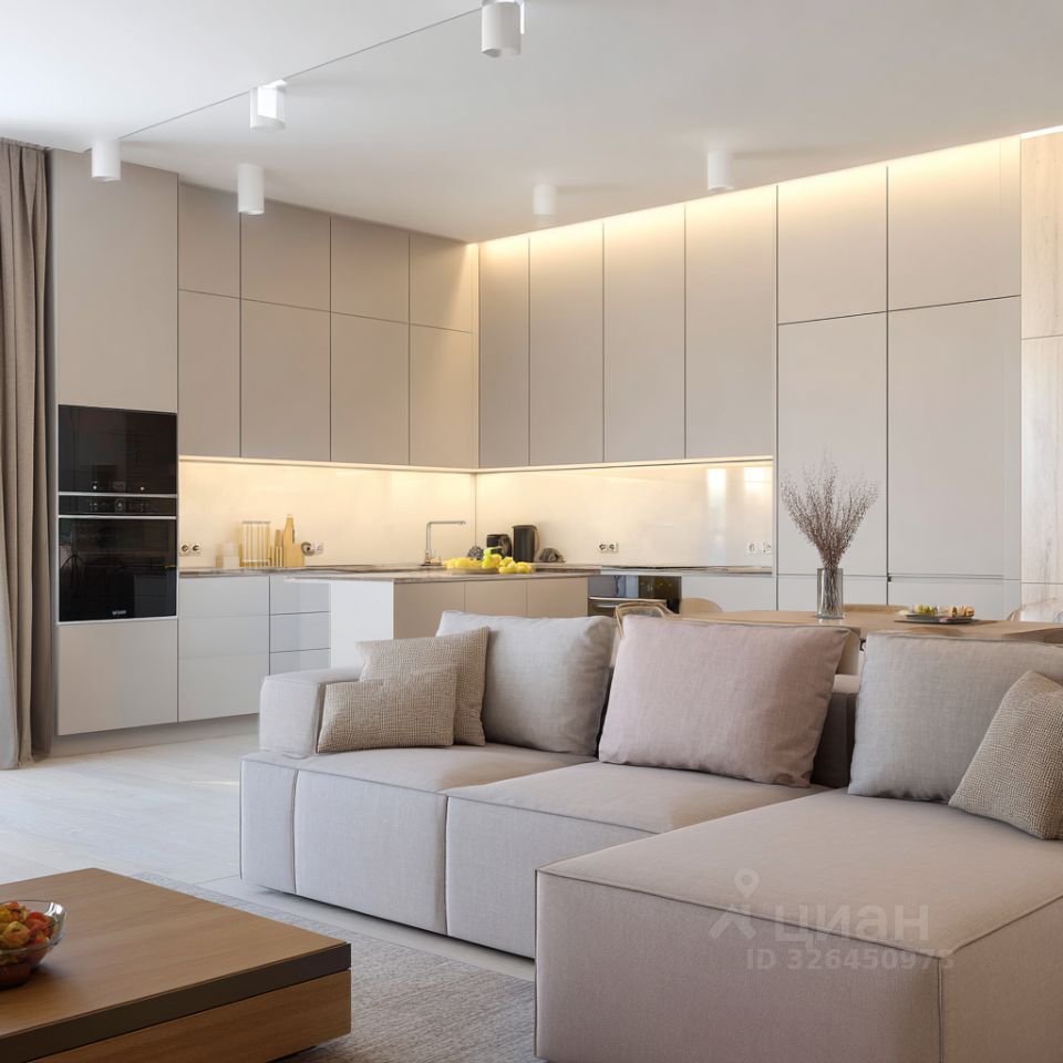 Удобная планировка: просторная кухня-гостиная, 2 спальни, 2 сан. узла, гардеробная, холл. Потолки 3.1 м.