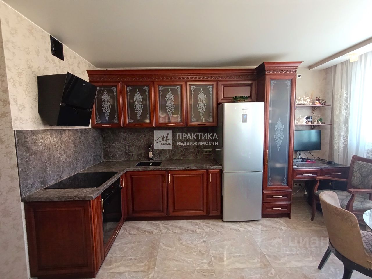 Мебель: кухонный гарнитур укомплектован варочной панелью, духовкой, вытяжкой, встроенной стиральной машиной, установлен кондиционер.