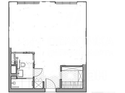 Квартира свободной планировки: большая кухня-гостиная, гардеробная, санузел. В квартире выполнен высококачественный ремонт. При желании новый владелец может перепланировать пространство по своему усмотрению.