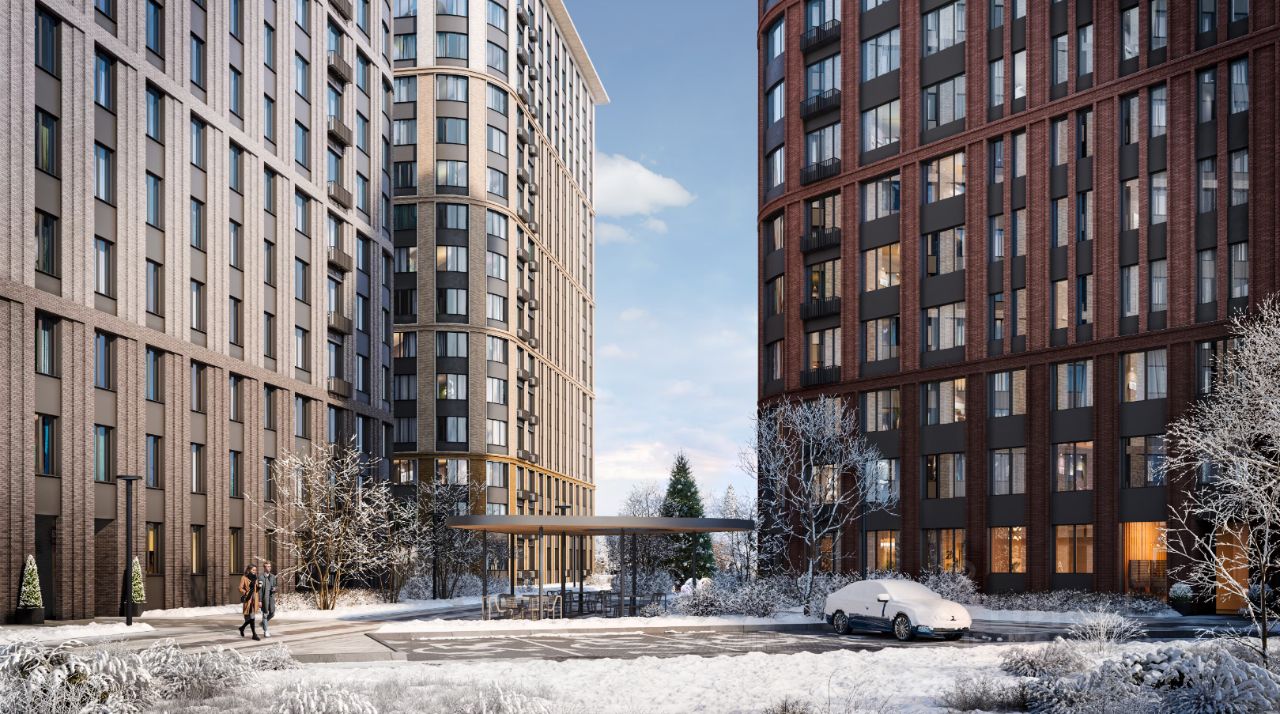 • Двор второго корпуса называется "Двор-площадь". Он расположен ближе к Говоровскому лесу. Запроектированное как городская площадь пространство будто играет на контрастах с природным массивом. Здесь преобладает линейность, а зелень высажена островками. В центре двора пергола, задающая траектории движения. Это идеальное место как для работы, так и для общения с соседями. Например, для вечерних настольных игр. Также во дворе есть уютные зоны с гамаками и тактильный сад. На первых этажах комплекса — удобные коммерческие помещения: кофейни, пекарни и салоны красоты.