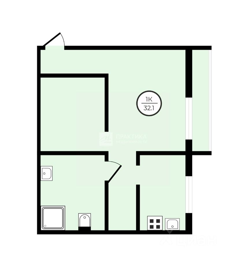 Объединенный с/у с душевой кабиной. Есть отдельная зона для стиральной машины. Балкон застеклен.