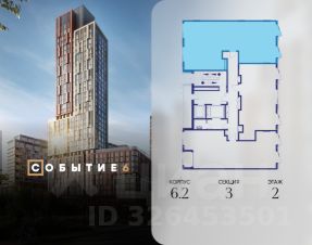 Продаётся 3-комнатная квартира от застройщика: общая площадь 104.50 м², жилая 43.70 м², кухня 29.00 м², 2-й этаж, жилой квартал "Событие-6", корпус 2 (секция 3) Срок сдачи: 1 квартал 2029 года.