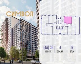 Продается квартира-студия от застройщика: общая площадь 35.30 м², жилая 10.00 м², кухня 14.80 м², 17-й этаж, жилой квартал "Гордость", корпус 36 (секция 4). Срок сдачи: 2 квартал 2029 года.