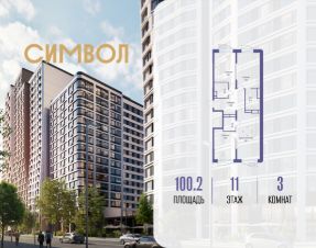 Продается 3-комнатная квартира от застройщика: общая площадь 100.20 м², жилая 48.10 м², кухня 25.10 м², 11-й этаж, жилой квартал "Гордость", корпус 36 (секция 3). Срок сдачи: 2 квартал 2029 года.