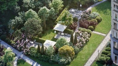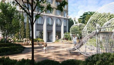 Собственные спорт-румы, детская, репетиторская, бьюти-пространства, деловое пространство с коворкингом, переговорной и сигарной. Собственный трехуровневый фитнесс-центр с бассейном, тренажерным залом, сауной, хаммамом, массажным кабинетом. Площадь двора - 1,8 га, половина территории покрыта деревьями, кустарниками и лужайками.