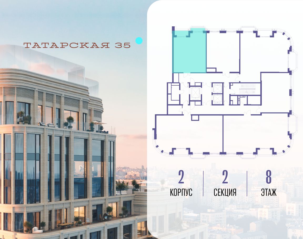 ТАТАРСКАЯ, 35 - новая архитектурная доминанта Замоскворечья, достопримечательность на фотопанорамах исторического центра Москвы. Элитный дом, созданный для тех, кто умеет смотреть далеко вперед, мыслить масштабно и воплощать собственный сценарий жизни.