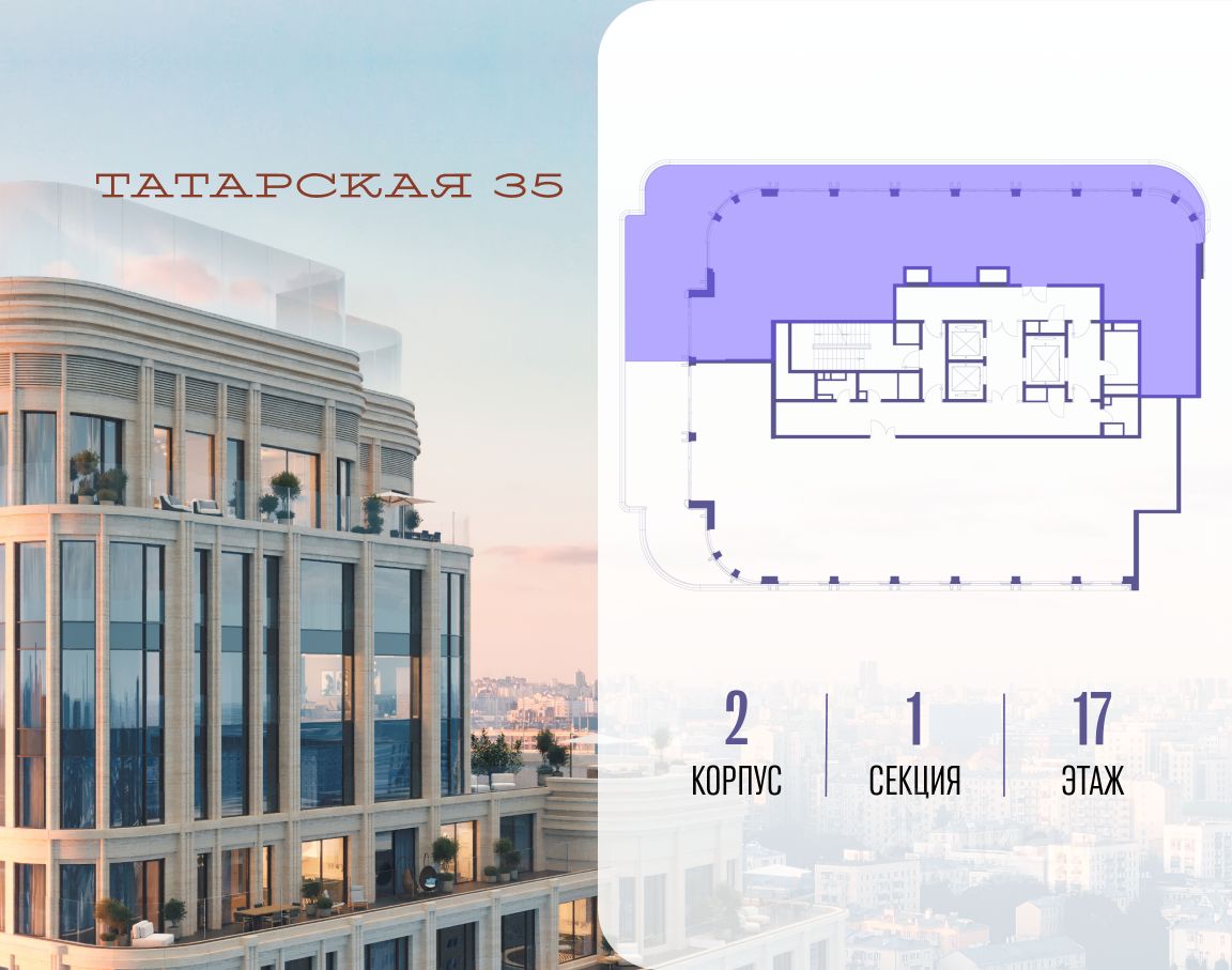 ТАТАРСКАЯ, 35 - новая архитектурная доминанта Замоскворечья, достопримечательность на фотопанорамах исторического центра Москвы. Элитный дом, созданный для тех, кто умеет смотреть далеко вперед, мыслить масштабно и воплощать собственный сценарий жизни.
