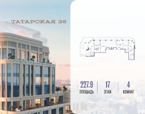 Продается просторная квартира площадью 227.90 м2 в жилом комплексе ТАТАРСКАЯ, 35. Квартира находится в 1 секции корпуса 2. Этаж 17-й из 19.