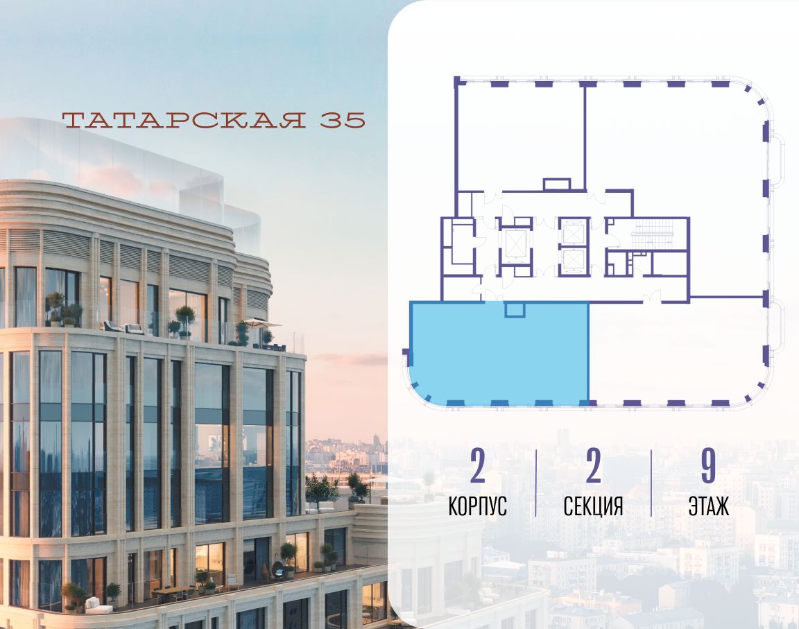 ТАТАРСКАЯ, 35 - новая архитектурная доминанта Замоскворечья, достопримечательность на фотопанорамах исторического центра Москвы. Элитный дом, созданный для тех, кто умеет смотреть далеко вперед, мыслить масштабно и воплощать собственный сценарий жизни.