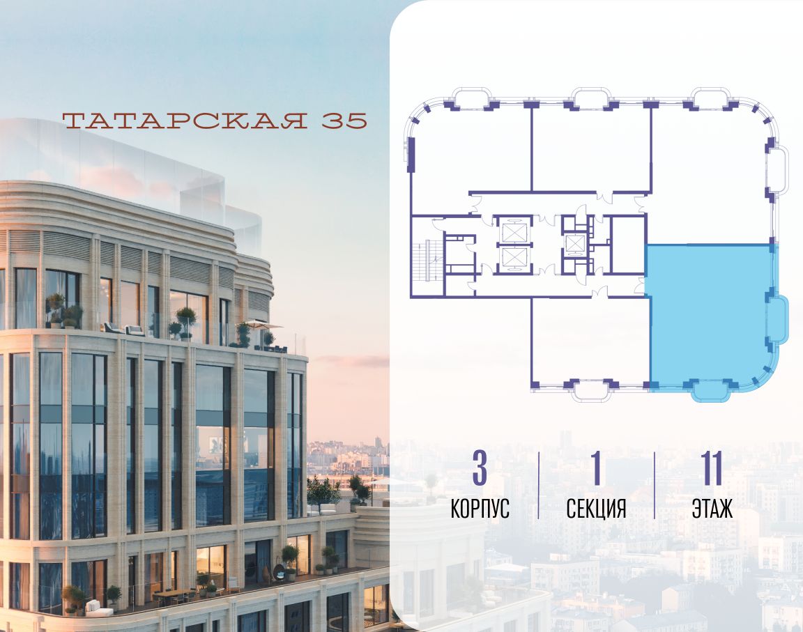 ТАТАРСКАЯ, 35 - новая архитектурная доминанта Замоскворечья, достопримечательность на фотопанорамах исторического центра Москвы. Элитный дом, созданный для тех, кто умеет смотреть далеко вперед, мыслить масштабно и воплощать собственный сценарий жизни.
