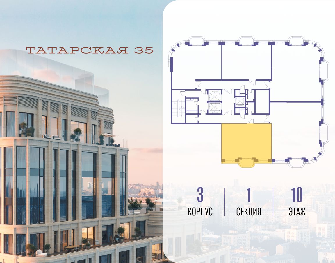 ТАТАРСКАЯ, 35 - новая архитектурная доминанта Замоскворечья, достопримечательность на фотопанорамах исторического центра Москвы. Элитный дом, созданный для тех, кто умеет смотреть далеко вперед, мыслить масштабно и воплощать собственный сценарий жизни.