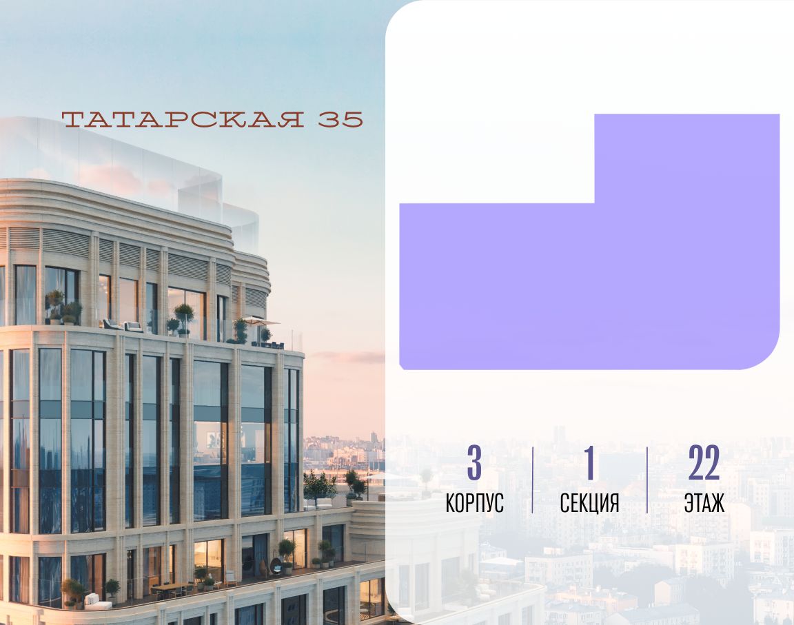 ТАТАРСКАЯ, 35 - новая архитектурная доминанта Замоскворечья, достопримечательность на фотопанорамах исторического центра Москвы. Элитный дом, созданный для тех, кто умеет смотреть далеко вперед, мыслить масштабно и воплощать собственный сценарий жизни.