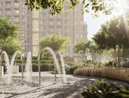 Собственные спорт-румы, детская, репетиторская, бьюти-пространства, деловое пространство с коворкингом, переговорной и сигарной. Собственный трехуровневый фитнесс-центр с бассейном, тренажерным залом, сауной, хаммамом, массажным кабинетом. Площадь двора - 1,8 га, половина территории покрыта деревьями, кустарниками и лужайками.