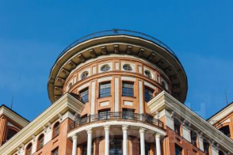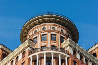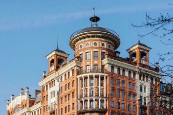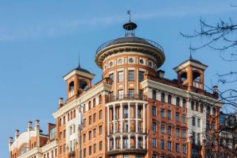 Архитектура жилого комплекса выполнена в стиле традиционной архитектуры столицы. Фасад из красного кирпича украшен большим количеством декоративных элементов, доминанта композиции - круглая башня с куполом, в которой располагаются верхние уровни пентхауса. Отделка лобби выполнена с использованием натуральных материалов, камня и дерева.