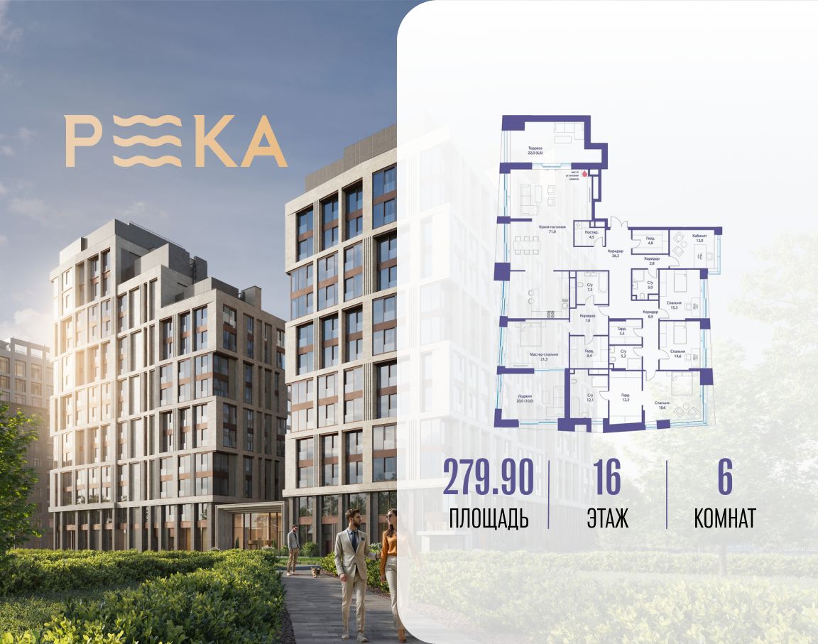 Продается просторная квартира площадью 279.90 м2 в жилом комплексе РЕКА. Квартира находится в 1 секции корпуса 3 (будет введен в эксплуатацию в 4 кв. 2026). Этаж 16-й из 16.
