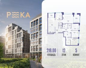 Продается просторная квартира площадью 219.00 м2 в жилом комплексе РЕКА. Квартира находится в 4 секции корпуса 3 (будет введен в эксплуатацию в 4 кв. 2026). Этаж 12-й из 14.