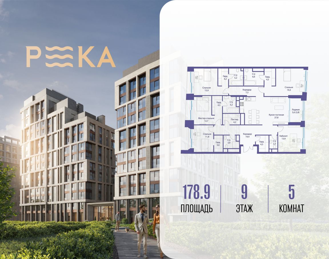 Продается просторная квартира площадью 178.90 м2 в жилом комплексе РЕКА. Квартира находится в 1 секции корпуса 3 (будет введен в эксплуатацию в 4 кв. 2026). Этаж 9-й из 16.