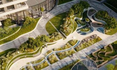 Закрытый двор без машин обеспечен круглосуточной охраной и системами контроля доступа. Двор создан как ландшафтное продолжение окружающих природных парков и зонирован для различных видов отдыха, детских игр, занятий спортом.