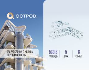 Продаётся квартира от застройщика: общая площадь 539.60 м², жилая 163.80 м², кухня 107.40 м², 5-й этаж, жилой квартал "Остров 10", (секция 1). Срок сдачи: 2 квартал 2026 года.